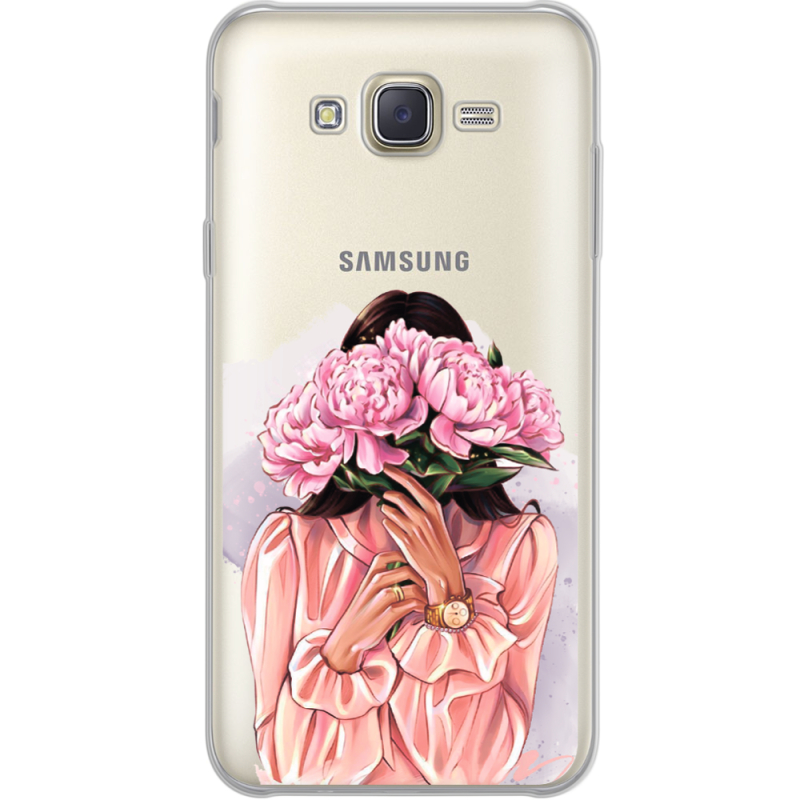 Прозрачный чехол Uprint Samsung J701 Galaxy J7 Neo Duos Девушка с Пионами