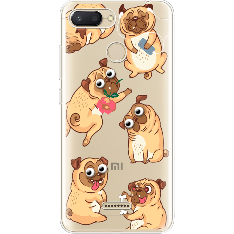 Прозрачный чехол Uprint Xiaomi Redmi 6 с 3D-глазками Pug