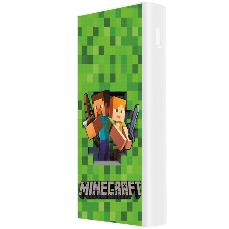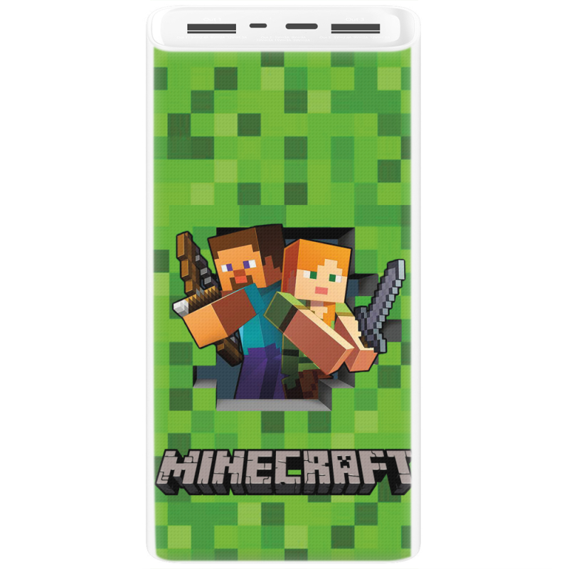 Xiaomi Mi Power Bank 3 20000mAh (PLM18ZM) Белый с принтом Майнкрафт Стів і Алекс