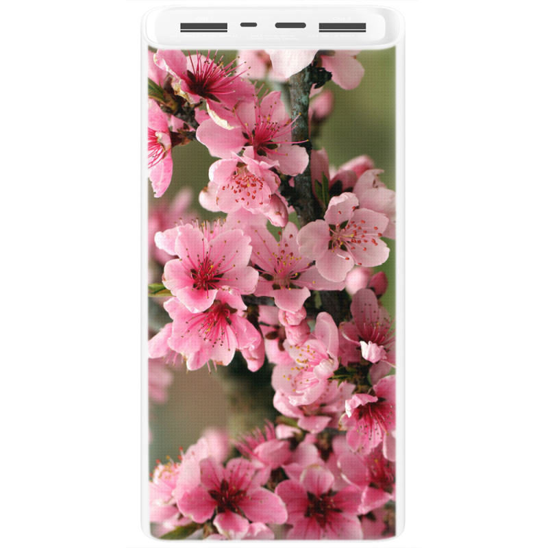 Xiaomi Mi Power Bank 3 20000mAh (PLM18ZM) Белый с принтом Вишневые Цветы