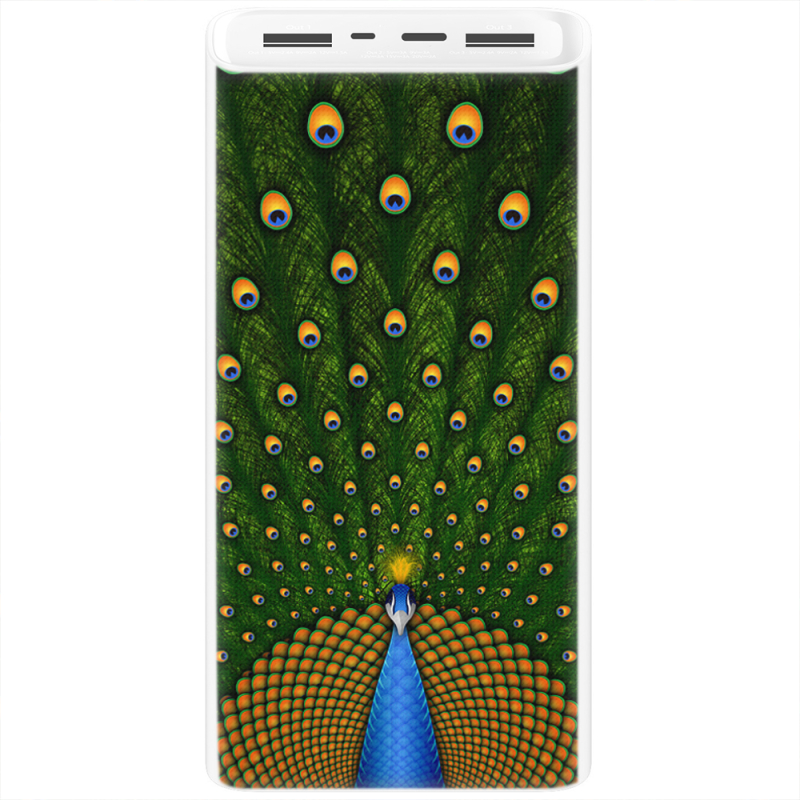 Xiaomi Mi Power Bank 3 20000mAh (PLM18ZM) Белый с принтом Peacocks Tail